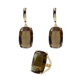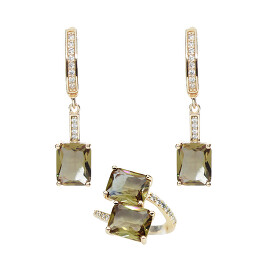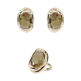 Комплект Нила (кольцо и серьги с султанитом, покрытие под золото, размер кольца 19) Агат77