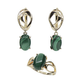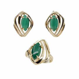 Комплект Мила-10 (кольцо и серьги с малахитом натуральным, покрытие под золото, размер кольца 19) Агат77