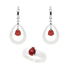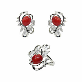 Комплект Кира-2 (кольцо и серьги с кораллом натуральным, покрытие родий, размер кольца 19) Агат77