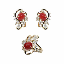 Комплект Кира-17(кольцо и серьги с кораллом натуральным, покрытие под золото, размер кольца 19) Агат77