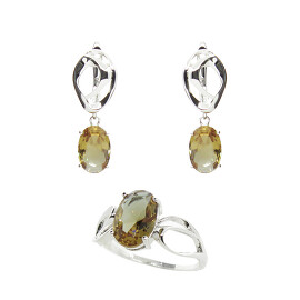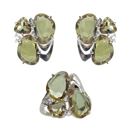 Комплект Нила (кольцо и серьги с султанитом, покрытие родий, размер кольца 18) Агат77