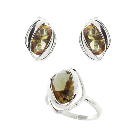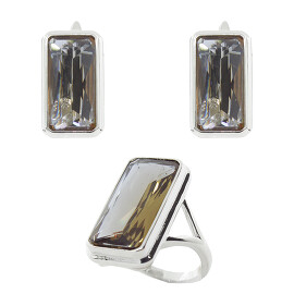 Комплект Цефея (кольцо и серьги с султанитом, покрытие родий, размер кольца 20) Агат77