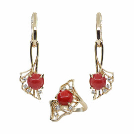 Комплект Кира-2 (кольцо и серьги с кораллом натуральным, покрытие под золото, размер кольца 18) Агат77