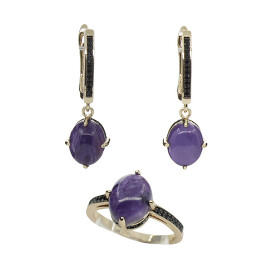 Комплект Чара-16 (кольцо и серьги с чароитом покрытие под золото, размер кольца 19) Агат77