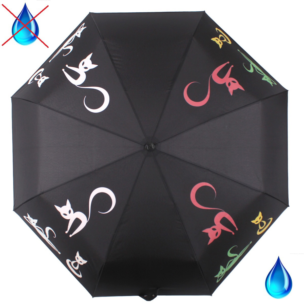 Зонт автомат 3 сложения с проявляющимся рисунком Тайные знаки кошки Flioraj