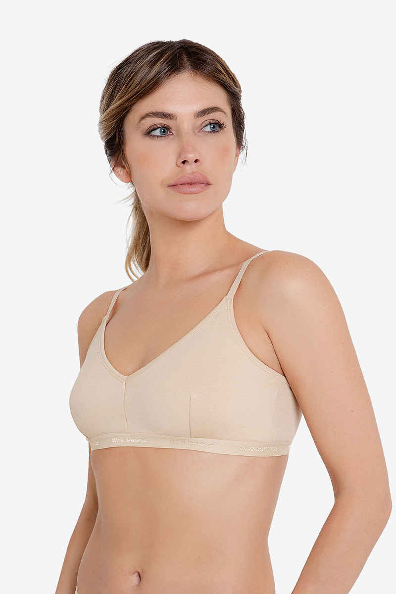 Спортивный бюст из хлопка с добавлением эластана на регулируемых бретелях. Горловина имеет V — образный вырез. Пройма и горловина обработаны окантовкой. Передняя часть топа усилена подкладкой из хлопка для лучшей поддержки груди. По низу изделия мягкая эластичная резинка с логотипом Alla Buone.