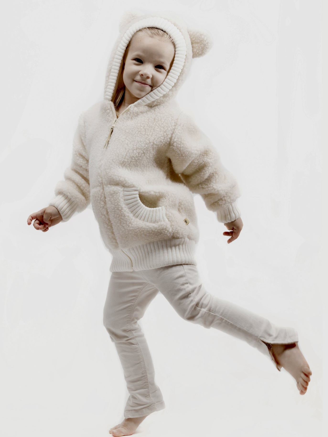 Очаровательная куртка для малышей ALEC с медвежьими ушками на капюшоне. Флисом отделан только капюшон и шейная часть.