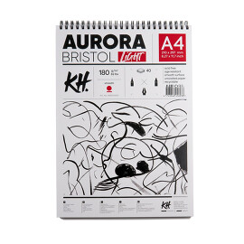 Альбом бумаги Bristol гладкий А5 на спирали, альбомная ориентация, 40 листов Aurora