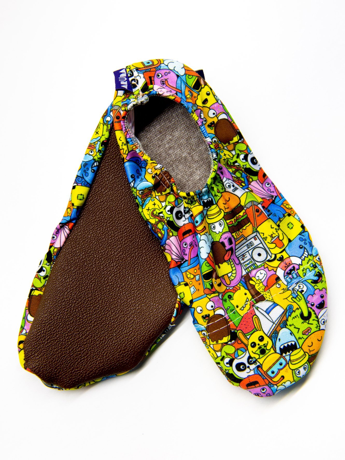 - Верх чешек: 90% полиэстер, 10% эластан; подошва: 88% поливинилхлорид, 12% хлопок