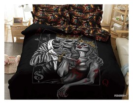 Комплекты постельного белья из сатина, покрывала с принтами, простыни на резинке.