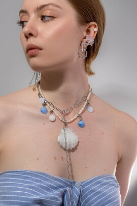 Кулон-подвес на жемчужной нити 45 см Ракушка Baikal Murano