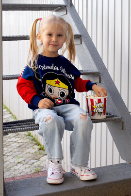 Свитшот подростковый из футера для девочек. Черно-розовый свитшот с ярким принтом Чудо-женщина из комиксов.