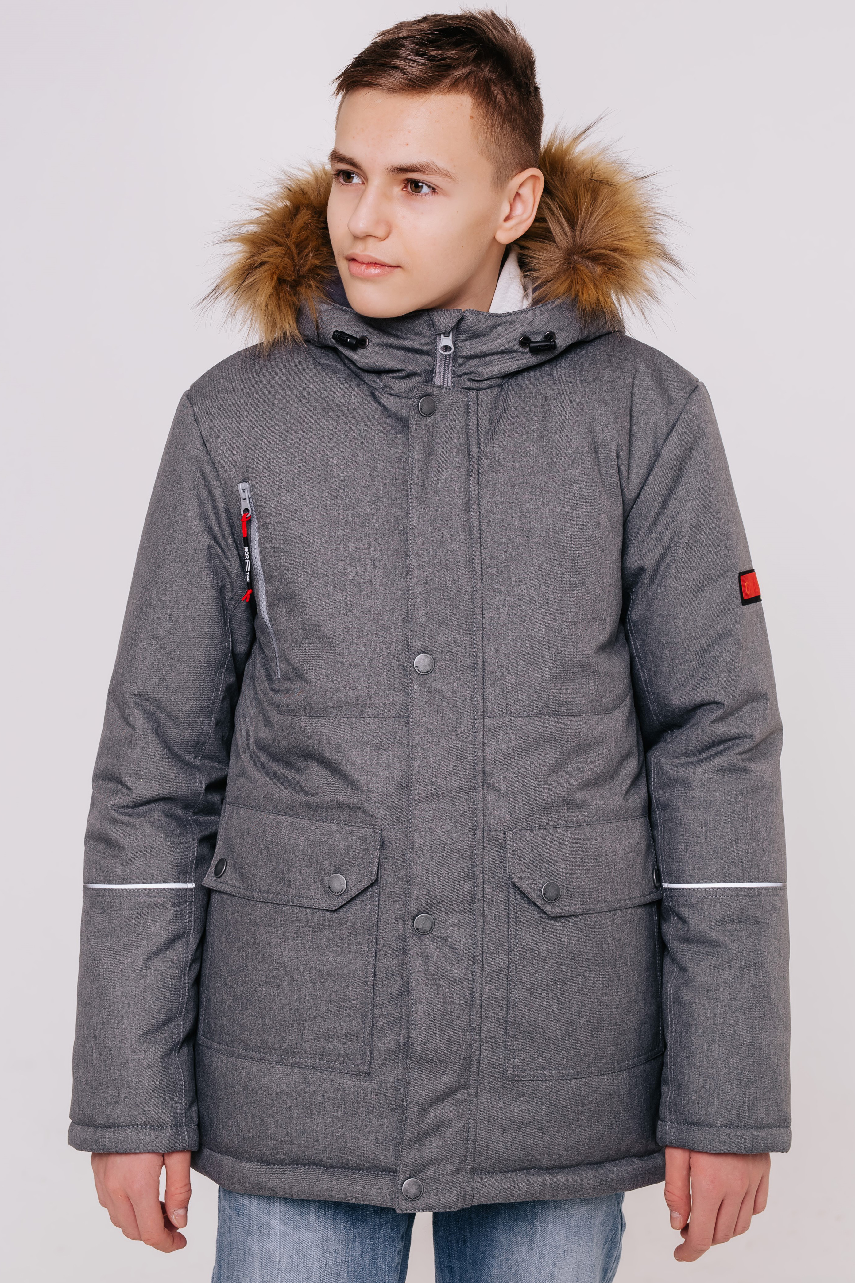 Куртка для мальчика утепленная. Стильная мембранная модель с флисовым подкладом и утеплителем слайтекс. Опушка из искусственного меха съемная. Расцветки — серая и синяя на выбор. Контрастные элементы — нашивки, навес молнии. Особенности: Регулируемый объем и глубина капюшона Функция "теплый карман" Именная внутренняя нашивка Застежка на молнию с ветрозащитной планкой на кнопках + защита подбородка Гладкая подкладка в рукавах Регулировка по низу Светоотражающие элементы Карманы по бокам с клапанами на кнопках Мягкие трикотажные манжеты в рукавах. Температурный режим от 0 до — 40С