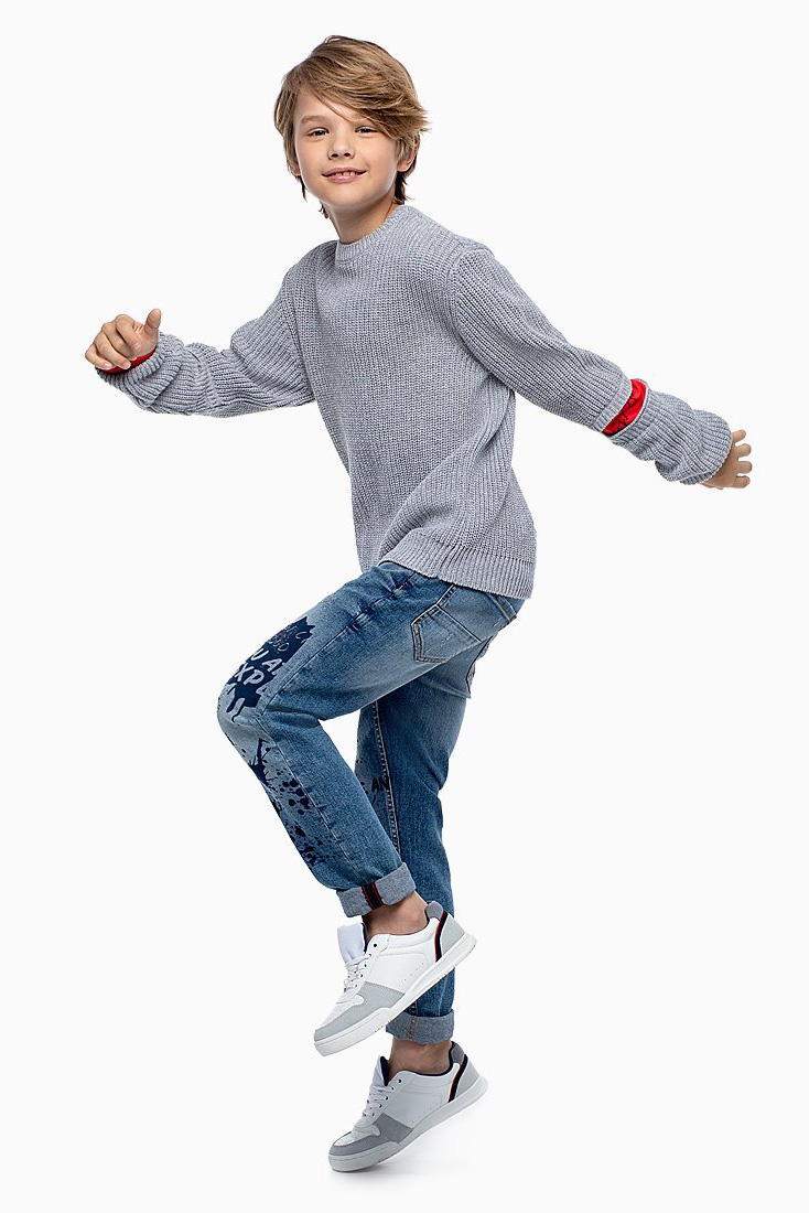 Джемпер для мальчика свободного силуэта имеет круглый вырез горловины, длинный рукав и контрастную отделку на рукавах и манжетах. Пряжа хлопок с акрилом надолго сохранит внешний вид и подарит приятные тактильные ощущения.