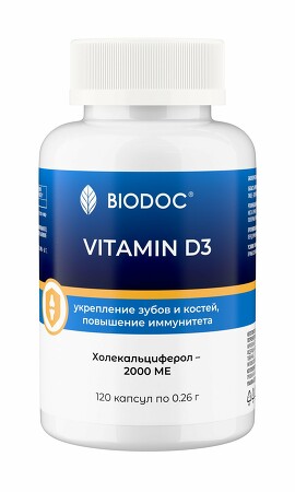 БАД. Витамин D3 2000 МЕ (120 капсул) Biodoc