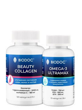 Набор БАД (Beauty Collagen 120 капсул и Omega 3 Ultramax 30 капсул) Biodoc