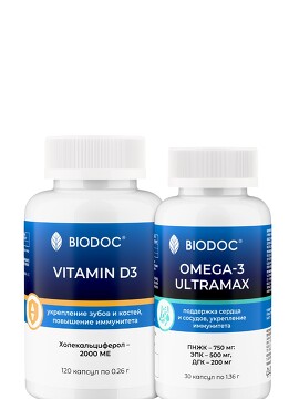 Набор БАД (Vitamin D3 120 капсул и Omega 3 Ultramax 30 капсул) Biodoc