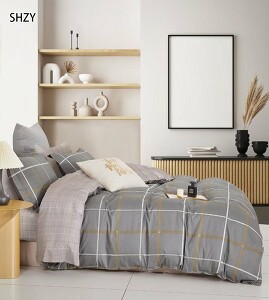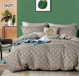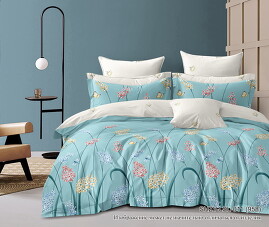 Комплекты постельного белья из сатина, покрывала с принтами, простыни на резинке.