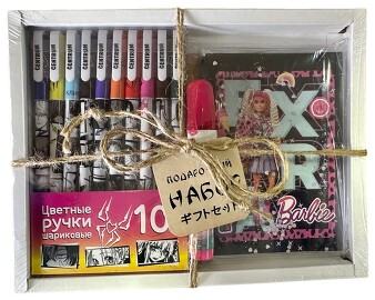 Набор (блокнот Барби, А6, набор цветных шариковых ручек Аниме, 10 цветов, ластик) Centrum