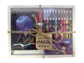 Набор (блокнот Вэнсдэй коллаж, А6, набор цветных шариковых ручек Аниме, 10 цв., ластик) Centrum