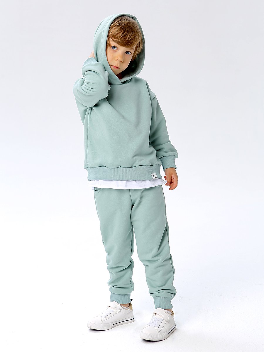 Стильный трикотажный костюм из петлевого футера. Этот трикотаж отлично сохраняет внешний вид после стирок и очень мягок. Худи с капюшоном и с футболкой "обманкой". Брюки спортивного стиля выполнены с поясом на широкой, мягкой резинке, по бокам карманы.