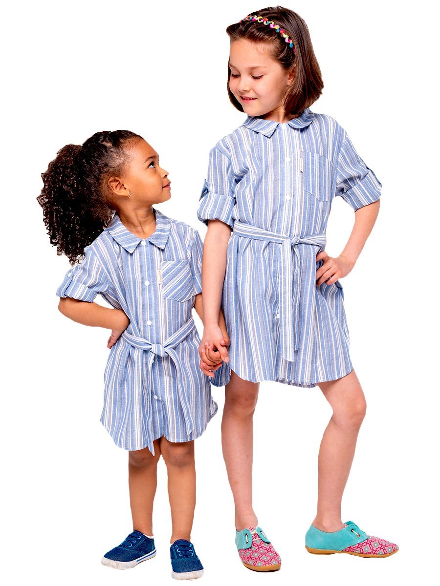 Платье-рубашка для девочки выполнено изо льна с содержанием синтетического волокна (лен 85%, полиэстер 15%). Мы специально выбрали ткань с таким составом, чтобы облегчить для покупателя уход за изделием. Лен с содержанием синтетического волокна не дает усадку изделия, хорошо гладится и что самое главное — не мнется при носке. Застегивается платье на кнопки и пояс. На груди имеется кармашек. Рукав у платья 3/4, с возможностью подворота при помощи специальной застежки.
