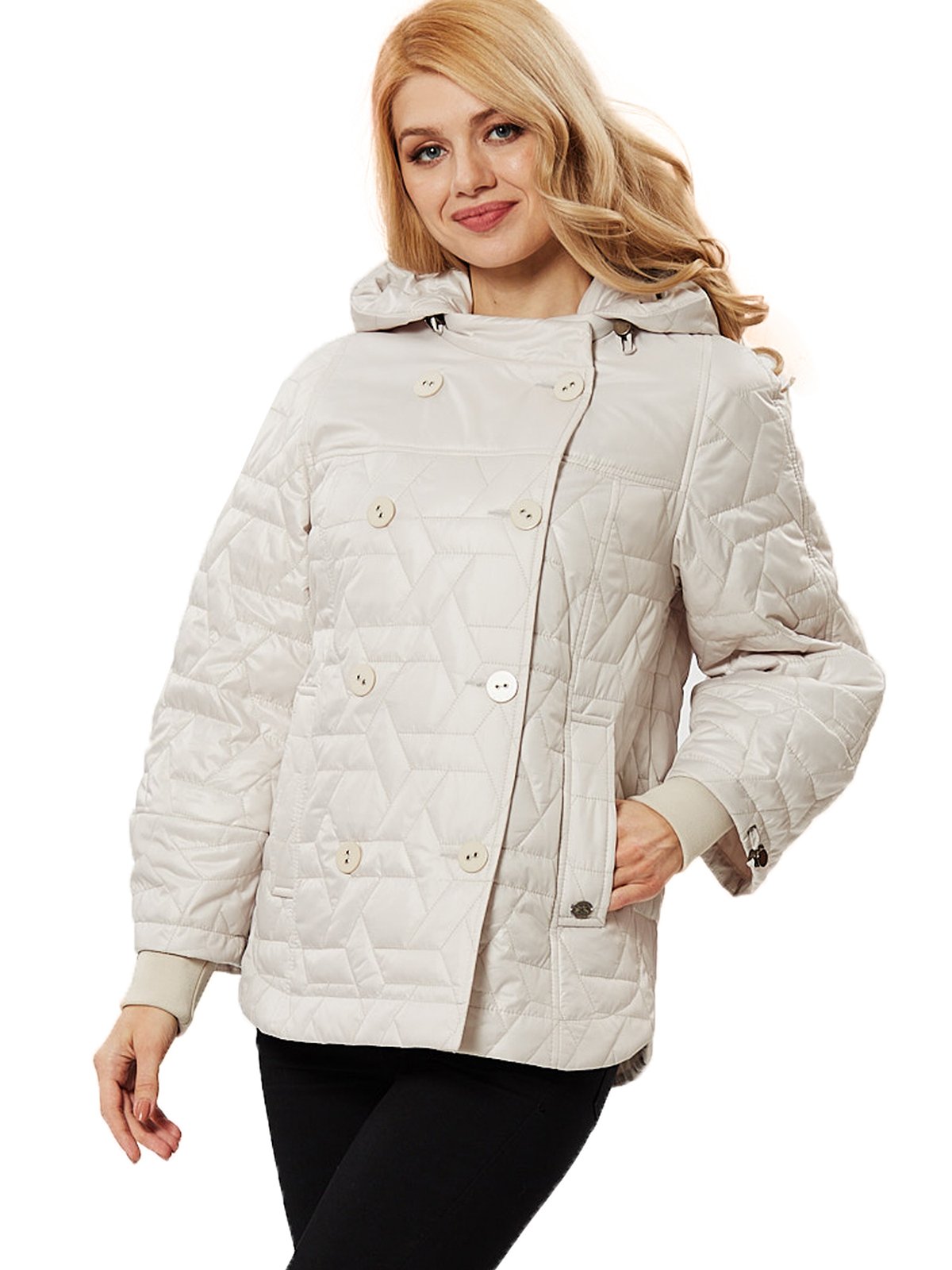 Утепленная куртка российского производства бренда D'imma из стеганной ткани с водоотталкивающей пропиткой. Двубортная застежка на пуговицы, воротник-стойка, фигурные разрезы по бокам. Оригинальные расширенные рукава-реглан с кулиской и длинными трикотажными манжетами. Капюшон с кулиской пристегивается на кнопки. Удлиненная спинка, оригинальные скругленные разрезы по бокам. Широкий размерный ряд, в наличии большие размеры.