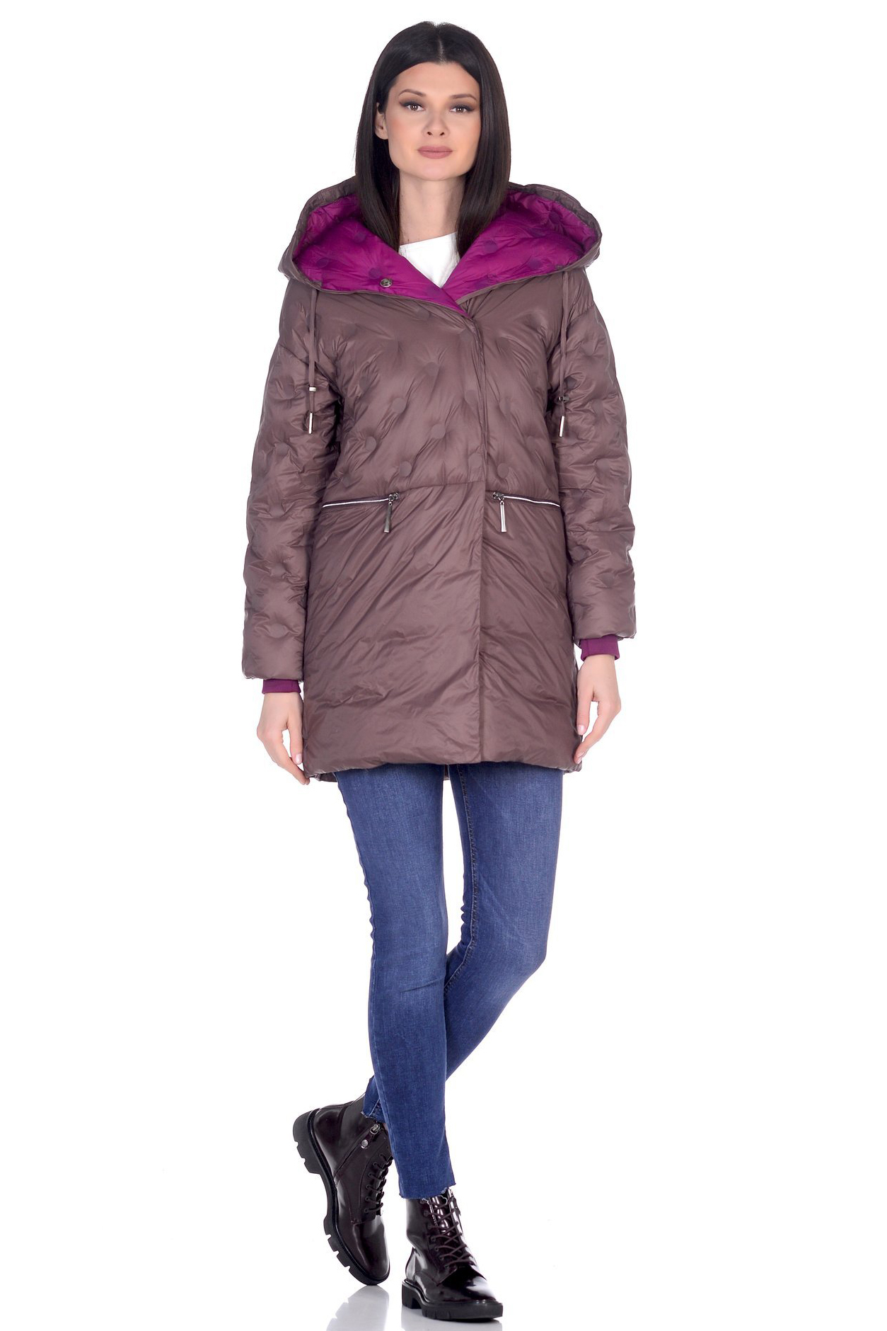 Удлиненная куртка из ткани с использованием технологии термостёжка « в горошек» с подкладкой контрастного цвета и двусторонним эффектом. Удобная длина до середины бедра, капюшон на кулиске, застежка на потайных кнопках. Отличный вариант для начала весны.