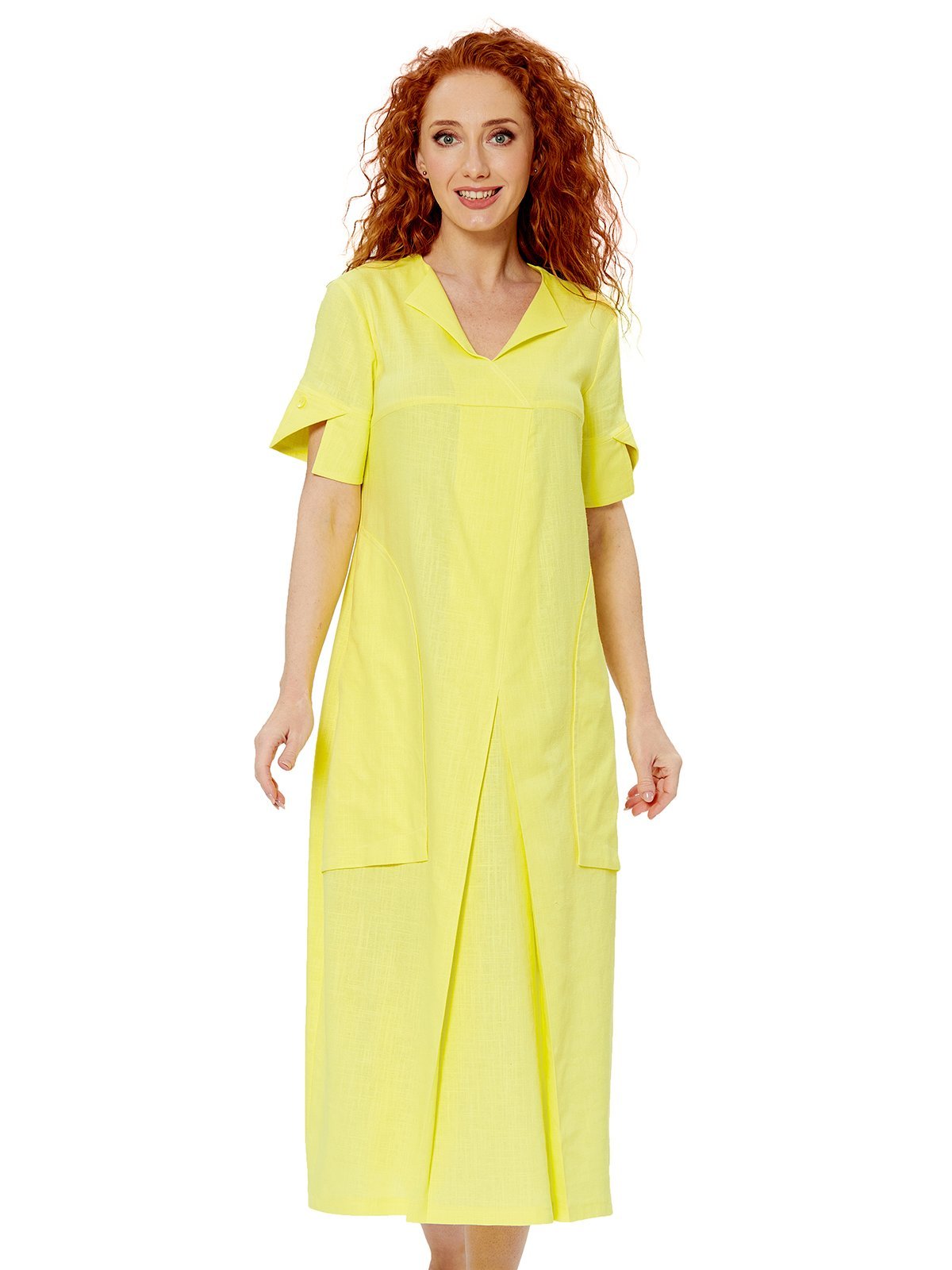 Свободное летнее платье бохо из льна с добавлением хлопка, российского производства бренда D'imma. Широкий размерный ряд, в том числе большие размеры.. Интересные рукава с декоративной отделкой, комфортные глубокие карманы.