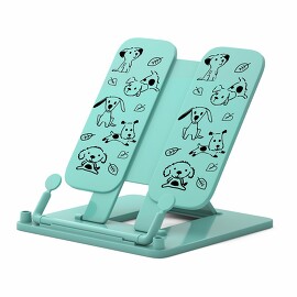 Пластиковая складная подставка с фиксатором для книг. Позволяет расположить книгу под удобным углом наклона (7 углов), тем самым положительно влияя на осанку и зрение ребенка. Держатель, расположенный в нижней части, надежно фиксирует страницы. Ширина подставки — 235мм, высота спинки — 190мм.