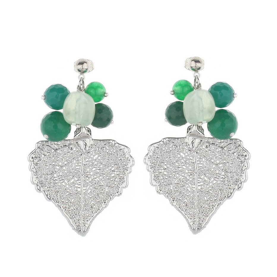 - Натуральные листья тополя, покрытые серебром, натуральные камни - синий агат