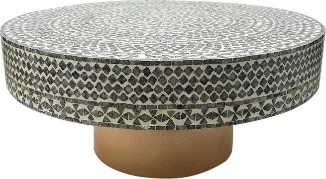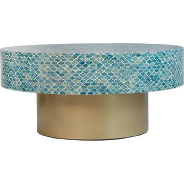 Столик кофейный с отделкой раковинами устриц 89х89х41см Glasar