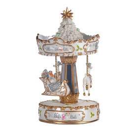 Украшение ёлочное Музыкальная шкатулка карусель с Сантой и санками белая 25 см Goodwill M&G