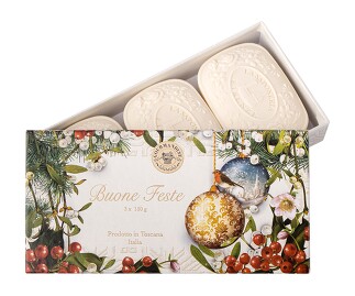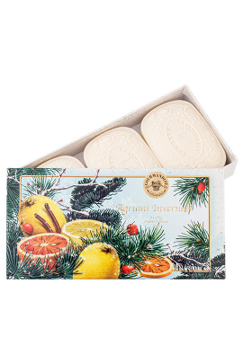 Набор парфюмированного мыла, изготовленного по традиционным итальянским рецептам.Утонченные ароматы обрамляет изысканная упаковка.Произведено в самом сердце Тосканы – прекрасной Флоренции.Состав набора: 3x125 г