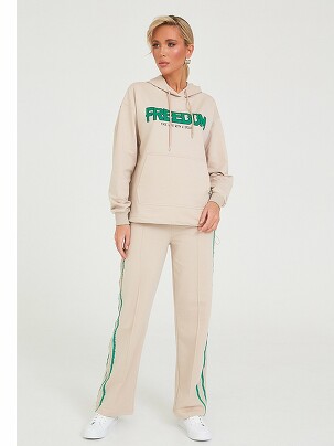 Штаны с лампасами по бокам и отстроченной стрелочкой по переду. Очень удобные для занятий спортом, сохраняющие свободу движений