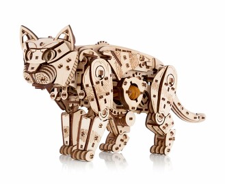 Деревянный конструктор, сборная модель Кота (Кошки) от EWA (Eco-Wood-Art) — сборная механическая модель из дерева, которая "оживает" после сборки. Большого размера, уже покрашена в черный цвет, но вы можете добавить узоры на ваш выбор. Двигается уверенно и размеренно, как настоящая. Модель из экологически чистых материалов, предназначенная для самостоятельной сборки и имеющая механизм, приводящий в движение. У механизма есть ручная заводка и возможность запускать и останавливать Кота. Конструкция деревянной модели позволяет ей двигаться максимально реалистично: во время движения Кот мило перебирает ножками, машет хвостом, чем вызывает бурю положительных эмоций у детей и взрослых. Это идеальная игрушка, замечательный подарок и достойный предмет коллекционирования для дома и офиса. Собранная модель отлично украсит любой интерьер от квартиры до офиса и подарит каждому море позитивных ощущений от сборки. Коллекция животных от EWA пополняется, вместе с Щенком, Черепахой, Трицератопсом и Птичкой ей будет весело.