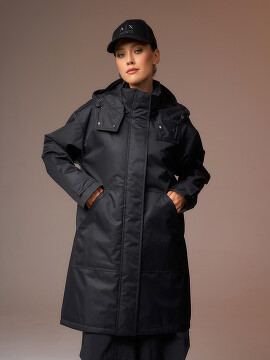 Утепленный плащ прямого силуэта со спущенным рукавом на резинке. Застежка на молнию в цвет изделия и на потайные кнопки. В изделии два функциональных кармана и один внутренний. Капюшон отстежной. Рукав втачной со спущенной линией плеча. По спинке изделия по линии талии есть утяжка с выходом на подкладку. Плащ выполнен из ткани на мембране с качественной водоотталкивающей пропиткой. Температурный режим изделия (от +10°C до +18°C). Утеплитель нового поколения ORSOTERM.150 г/м2.