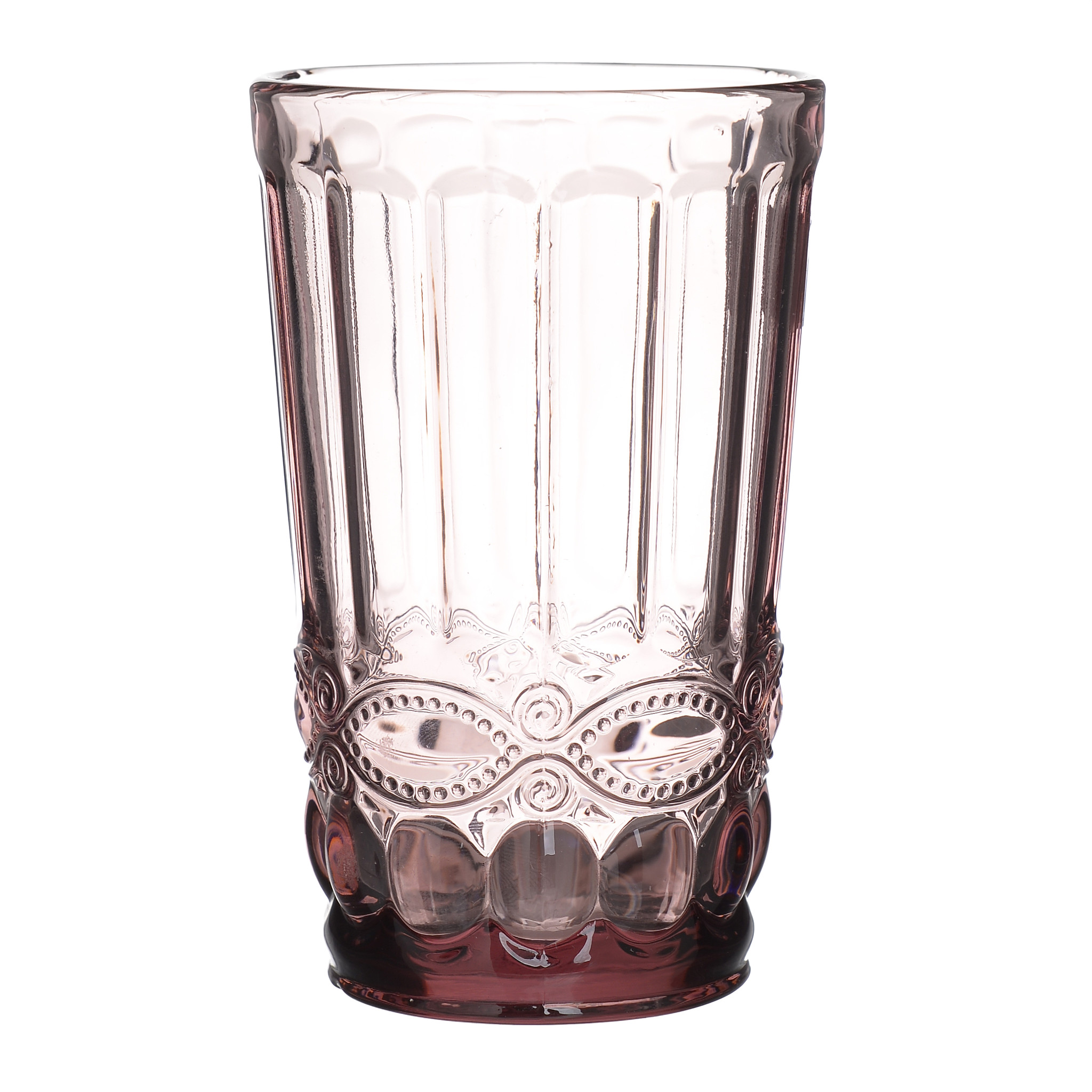 Комплект из шести элегантных стаканов объемом 310 мл, выполненных из стекла в нежном розовом цвете. Стаканы украшены рельефным винтажным орнаментом с тонкими вертикальными линиями и округлым основанием. Подходят для подачи воды, соков и других напитков. Придадут вашему столу особый шарм и изысканность.