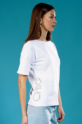 Удлиненный джемпер с декоративными элементами из пайеток и приспущенным рукавом — это модный и современный аксессуар вашего образа. Джемпер выполнен из плотного двухниточного футера, который хорошо сохраняет форму и не деформируется при стирке. Джемпер имеет удлиненный крой, который не сковывает движения и подходит для разных типов фигуры.