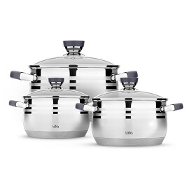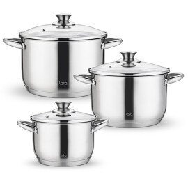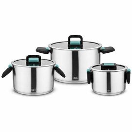 Кухонная посуда Lara выполнена из нержавеющей стали 18/10, что отражает процентное соотношение в сплаве хрома и никеля, которые придают ей антикоррозийные свойства.