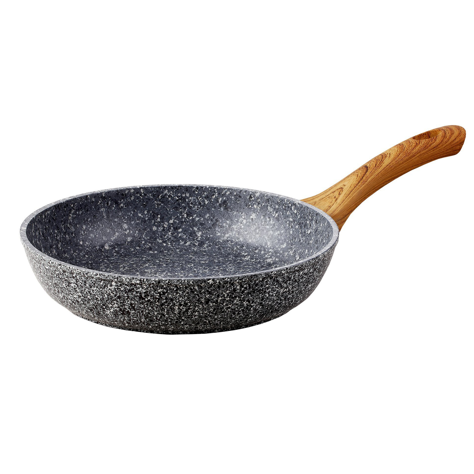 Готовьте самые разнообразные блюда со сковородой LARA LR01-55. Ее пятислойное капсулированное дно — гарант того, что прогреваться оно будет равномерно и быстро, продукты не подгорят, чему поспособствует антипригарное покрытие. Высота стенок – 45 мм, чтобы вы могли с комфортом перемешивать ингредиенты при готовке. Это сковороды круглой формы, материалом ее изготовления стал кованый алюминий, надежный и долговечный. Сковорода может использоваться с индукционными плитами. Она отделана под дерево, благодаря чему смотрится стильно и элегантно и станет отличным дополнением любой кухни.