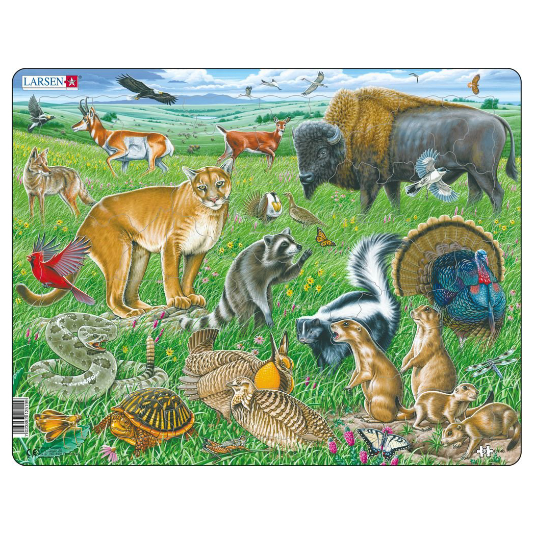 Пазлы Ларсен — это обучающие пазлы. На яркой картинке пазла изображены животные североамериканской степи.