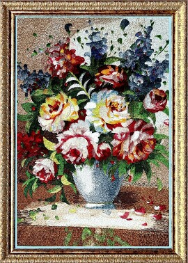Картина вышитая шелком с 3D эффектом Букет нежность (ручная работа), 52х73х3 Живой Шелк
