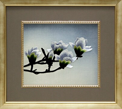 Картина вышитая шелком Ночная магнолия (ручная работа), 70х70х3 Живой Шелк