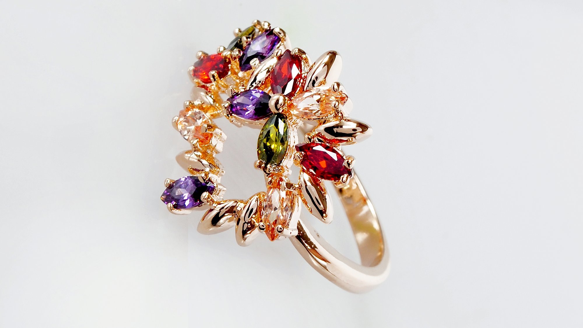Кольцо с разноцветными фианитами Камелия Lotus jewelry