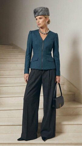 Оригинальный жакет на молнии с баской, выполненный из премиум-джерси с характерным узором «елочка». Модель сочетает структурированный силуэт и элегантный декоративный элемент в виде баски, подчёркивая талию и создавая выразительный образ. Высококачественная ткань обеспечивает комфорт, мягкость и аккуратную посадку, делая жакет универсальной и стильной вещью для повседневного и офисного гардероба.