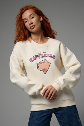 Свитшот женский базовый позволит быть стильной в легкую осеннюю и зимнюю погоду. Представляем тебе нашу универсальную женскую толстовку — свитшот, который стал настоящим хитом этого сезона! Оверсайз свободного кроя делает это худи идеальным вариантом не только для занятий спортом, но и для повседневного образа. Модель без начеса выполнена из очень приятного к телу материала, она не потеряет форму, не растянется, сохранит цвет даже после многочисленных стирок. Легкая и приятная на ощупь ткань поз