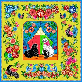 Платок Городецкая роспись, 90x90 Nina Ruchkina