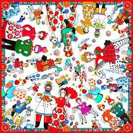 Платок Русская эмаль пестрая 100% шелк, 90x90 Nina Ruchkina