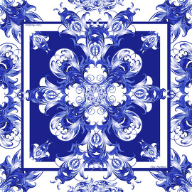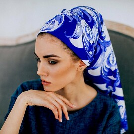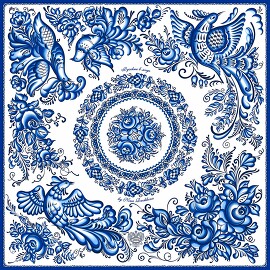 Платок Гжель 100% шелк, 90x90 Nina Ruchkina